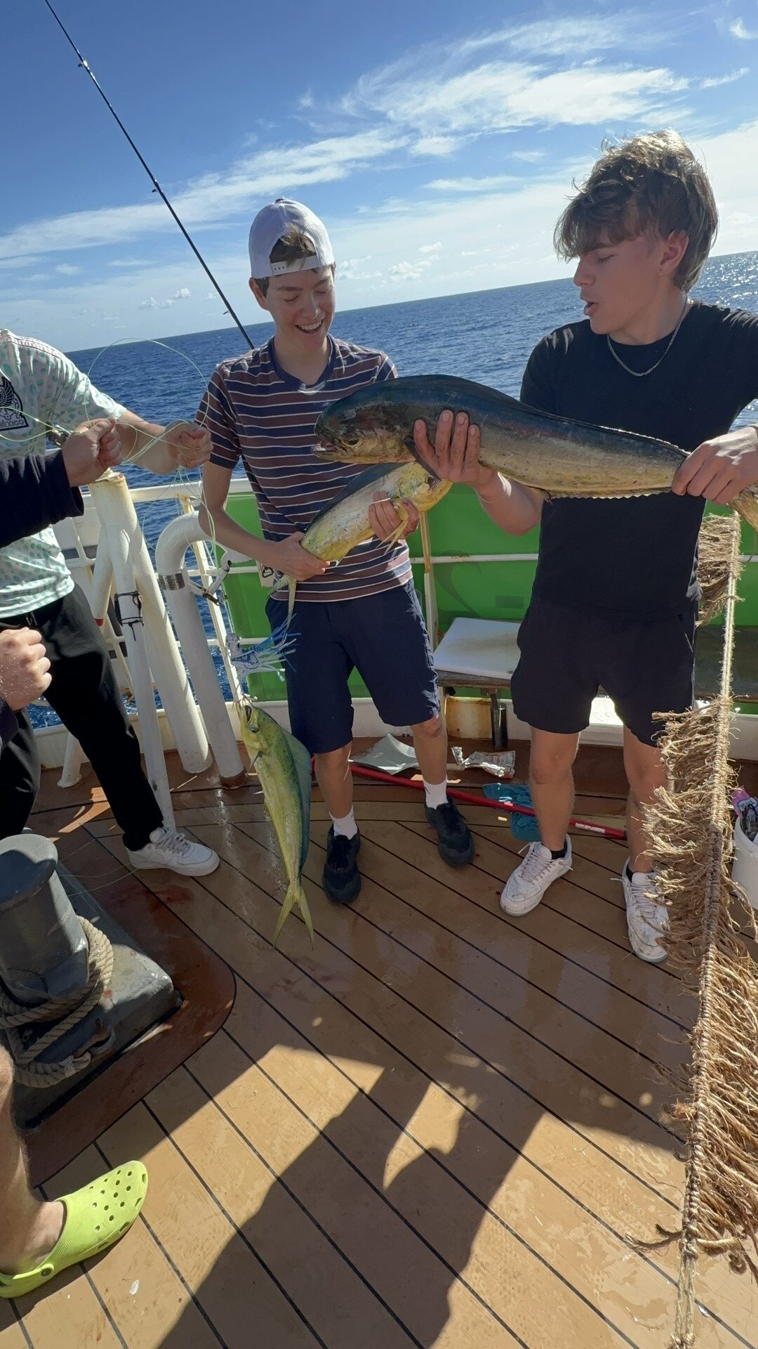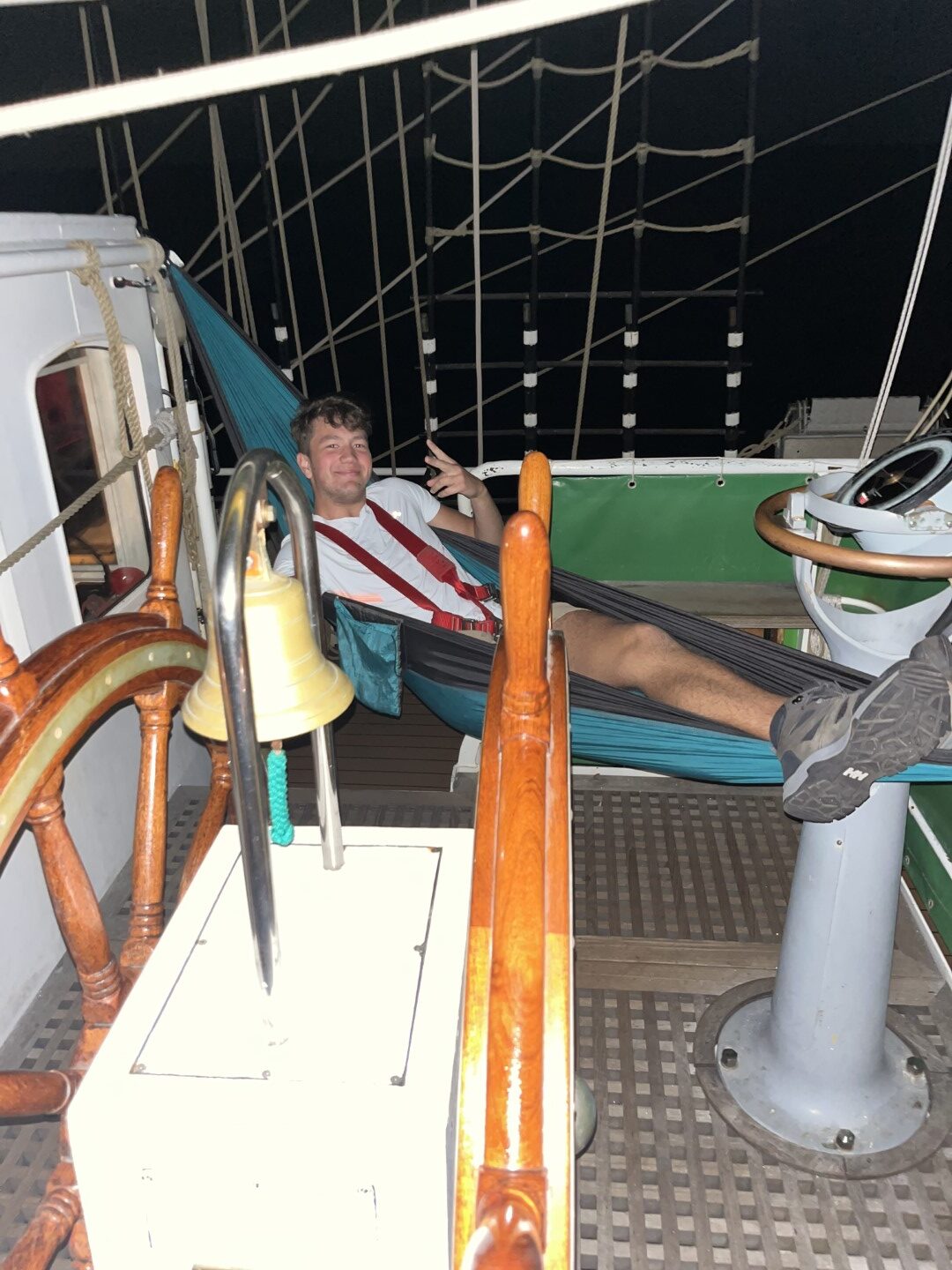 As we approach Cabo Verde, with an estimated arrival time of the 5th or 6th, the floaties have been finding loads of ways to stay busy and have fun on board. The fishing club, as well as the ship’s orchestra have been in full fling, with more and more members attending and getting involved. Today we got to experience catching and filleting a 20lb striped tuna! Lots of students got their hands dirty preparing the fish for the kitchen. We’ve also been keeping busy with the various deck projects assigned by the bosun to the student crew body. Each watch is responsible for one task, such as de-rusting railings, oiling wood, and painting. The orchestra continued with their daily rehearsal in preparation for the concert that is happening on sunday – the addition of Christmas tunes and another sea shanty was met with great appraisal! In the future we hope to keep some sails up, keep the engine off, and kceep on this bright smooth passage to Cabo.