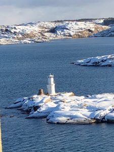 Nach einem deftigen Mittagessen, welches aufgrund der Besichtigung eine halbe Stunde nach hinten verlegt worden war, ging es um 13:00 Uhr weiter. Unter Maschine fuhren wir durch die Schärenwelt nach Lysekil. In dieser Zeit hatte ich die sogenannte Freiwache und konnte mich ein wenig ausruhen. Immer wieder ging ich mit meinen Kameraden an Deck um die Landschaft weiterhin bewundern zu können. Vor allem um die einmalige Möglichkeit auszunutzen, durch die verschneiten Schären zu fahren.
