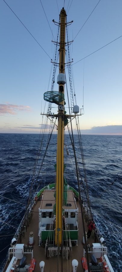 Yesterday, we had an attempted tack and ultimately a jibe. It was exhausting and hard. Our team leaders have a sore throat today from yelling the commands. It was a beautiful warm day and our youngest hardworking ordinary seaman was working hard up the mast in just a t-shirt. This morning I think was the best sunrise, it was beautiful as we saw the sun rising on the horizon and the colors cascaded across the sky. All in all, we have one more day to Madeira. We are learning a lot and always having fun!