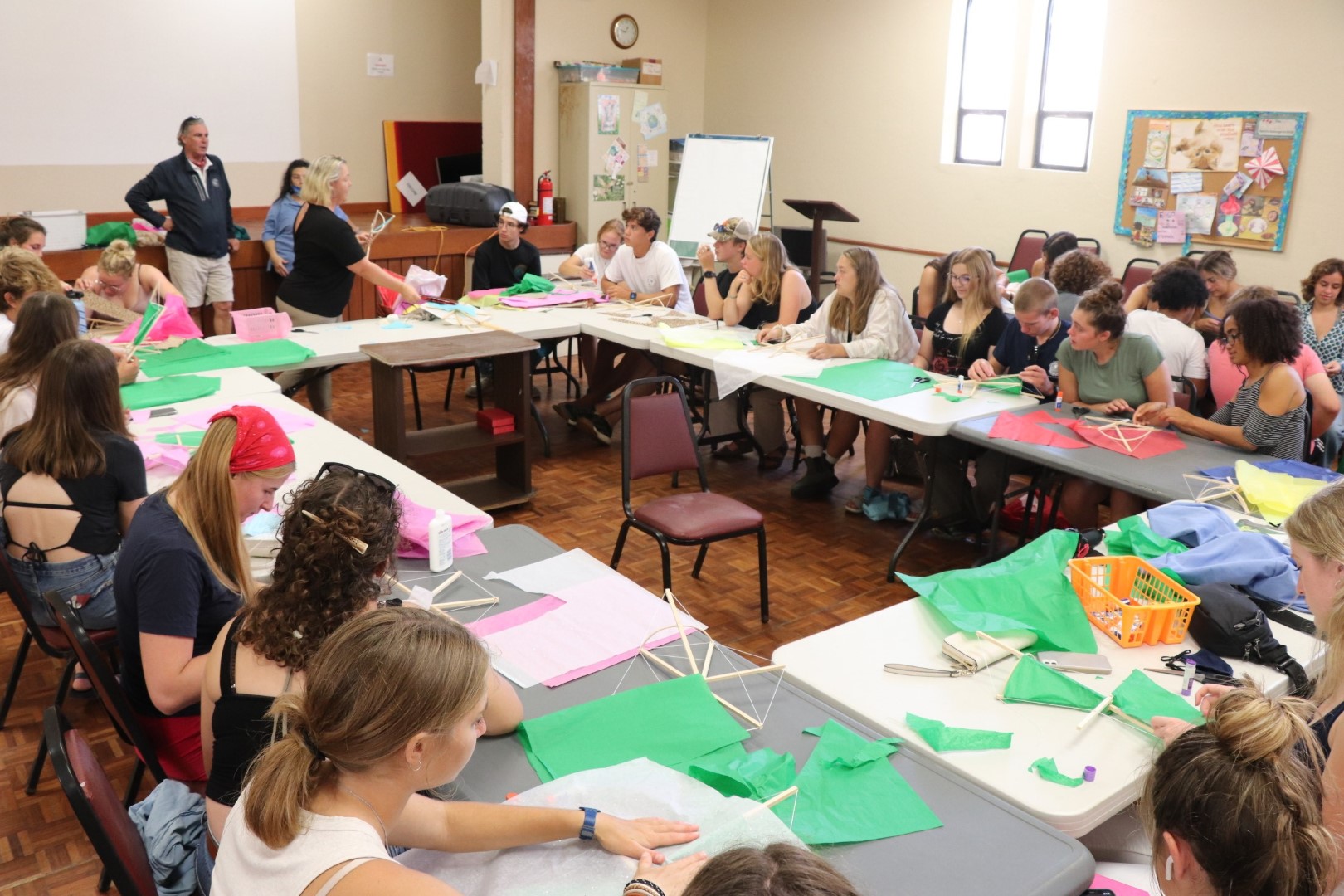 We had a great day in Hamilton yesterday exploring the town and beaches. For the port program we visited the cathedral and got to climb all 96 steps to the roof where we were given a virtual tour of the island… you could see the sea in every direction. Kite building is a tradition here and we attended a kite building workshop. They attach reeds to the kites that they call ‘hummers’… when they fly they make a really loud screeching noise. We all made our own.