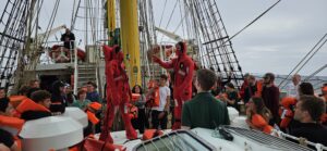 Just another day on the Alex yesterday. Classes, watch, and safety drills. Jack and Anaïs modeled the survival-suits for us, showing us how to put them on in case of emergency.