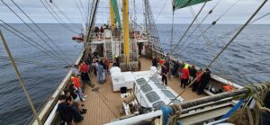 We had a drill yesterday where the crew practiced what to do in case someone falls overboard. Later some of us climbed up to the windsock. It’s the highest you can climb on the Alex and we wanted to do it before we leave.