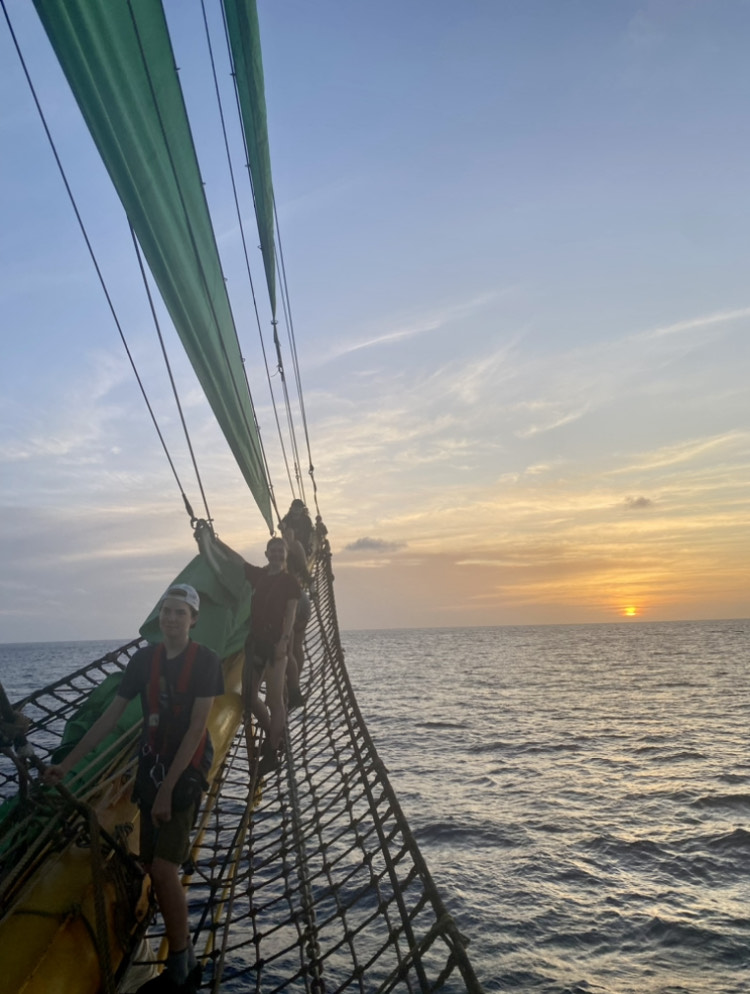 The day started off with a nice and sunny morning. After all chores were done, class started over. The beginning of another normal day in the middle of the Atlantic Ocean. The daily workout crew successfully completed their workout right before recharging their energy at lunch. The day seemed to develop like all the Atlantic days before. But wait, things started to change in the afternoon. Apparently somebody found some bugs in their beloved nuts. And what would be better than to examine them? So, a couple of people met on deck to investigate a little more. Meanwhile, Renee did her magic and prepared Hummus and zucchini for snack time. In the evening people formed little groups to play games or watch a movie together. And so, a seemly normal Atlantic day became special.