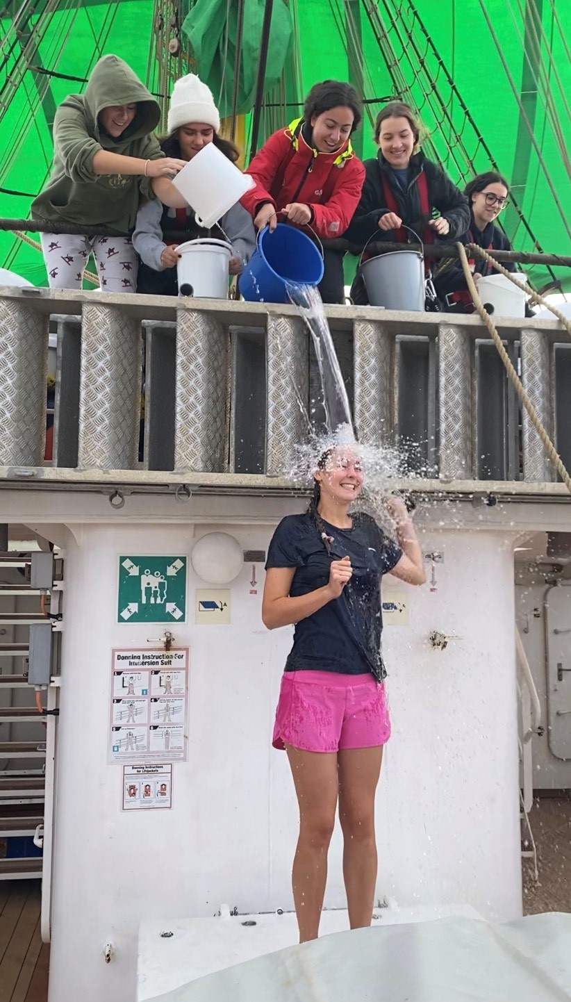 When crossing the Atlantic, not much happens. We fall into the routine of sleep, watch, class repeat. We will continue this for the next two weeks. Days tend to blend together. We celebrate birthdays, and today we celebrated Ellie’s! We attend our courses then watches. The meals mark the time of day and sometimes you wake up from a nap two minutes before. Some days the sun is shining and others the rain is pouring. Although, no matter the weather the ocean is a stable force that we have come to rely on and trust. It supports our ship, home, and school. It does toss us around on the ship while rolling on the waves. One minute you’re walking straight and the next you are in a room that is not yours or you’re far off from your intended destination. I am on the 0600-0800 watch and often the clouds blend into the horizon and you don’t know where one ends and the other begins. This is the beauty of the Atlantic crossing. There is support, routine, celebration, trust, and no end in site – yet.
