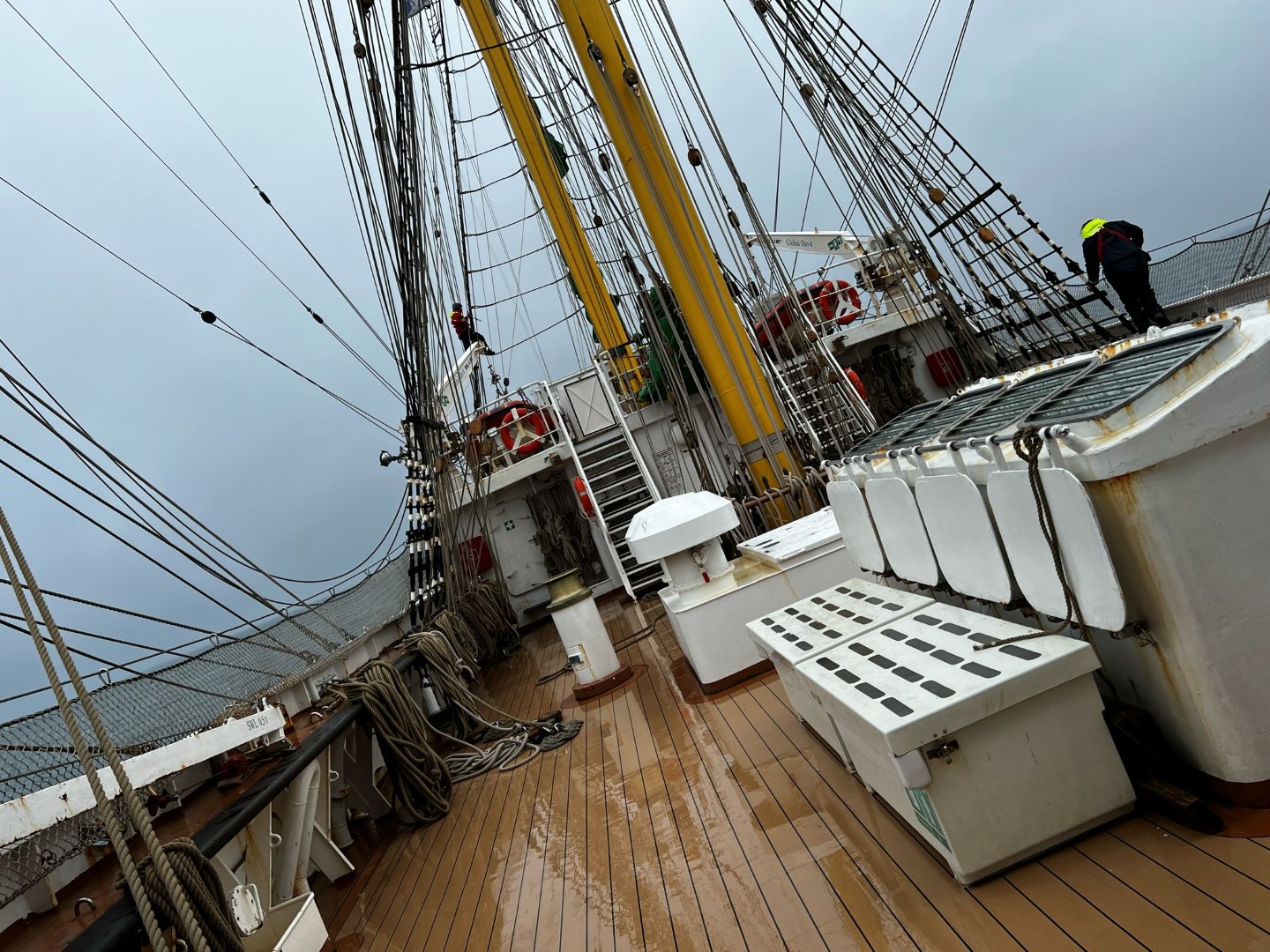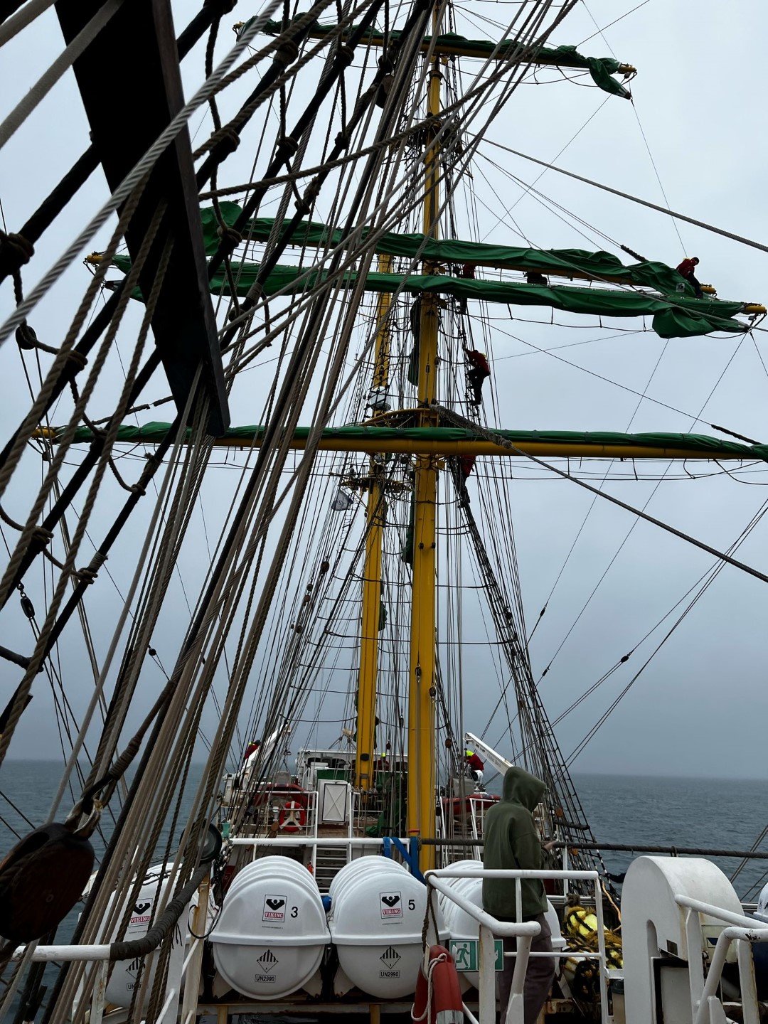 Hello, we have 4 days left until we reach Dublin. Today is a normal lessons days. The students had the chance to do some ship maneuvers during study hall for their OS. We will be anchored sometime tomorrow off the coast of England.