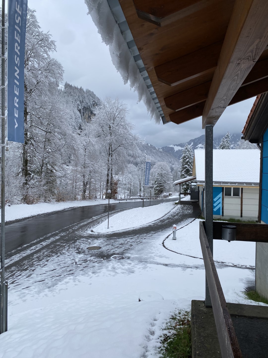 Yesterday we relaxed into our new home for the next two weeks, A sports camp in the Swiss Alps. There are a few football pitches, a games room with pool tables, hockey, darts and table football, a yoga studio and a gym, and there was a small climbing wall that we might get to use. The air is crisp and there are snow on the peaks. River runs through the camp and we are surrounded by trees. It’s a far cry from the ocean and the great place to land.