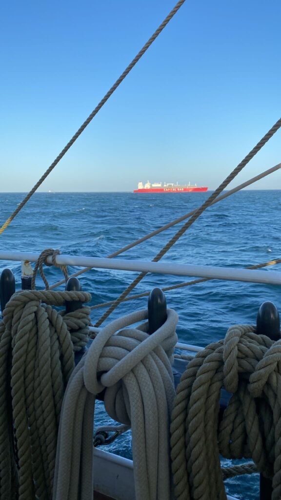 Our floaties woke up to a wonderful sunny day after a night of chopy seas at up to 10 knots speed. Classes resumed after a winderfzl shore leave and port programme in France. Floaties are now on the last leg of their journey and their last watch rotation, everybody managed to get to breakfast, watch and class without so much confusion, well done! The ship entered one of the busiest maritime route in the world and set out the sails for a smooth ride across the channel.