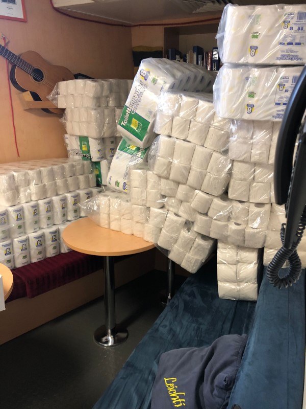 Auch vor Anker liegend ist es an Bord nicht so ruhig, wie viele es sich gewünscht hätten – das in der gesamten Belegung verbreitete Fischefüttern hat sich zwar soweit beruhigt, aber sobald man mal einen Blick durch ein Bullauge nach draußen erhascht, ist die Wahrscheinlichkeit sehr hoch, eine sogenannte Waschmaschine bei der Arbeit beobachten zu können (Schieflage des Schiffs, gepaart mit ordentlich Welle, verwirbelt das Wasser doch ganz ordentlich).