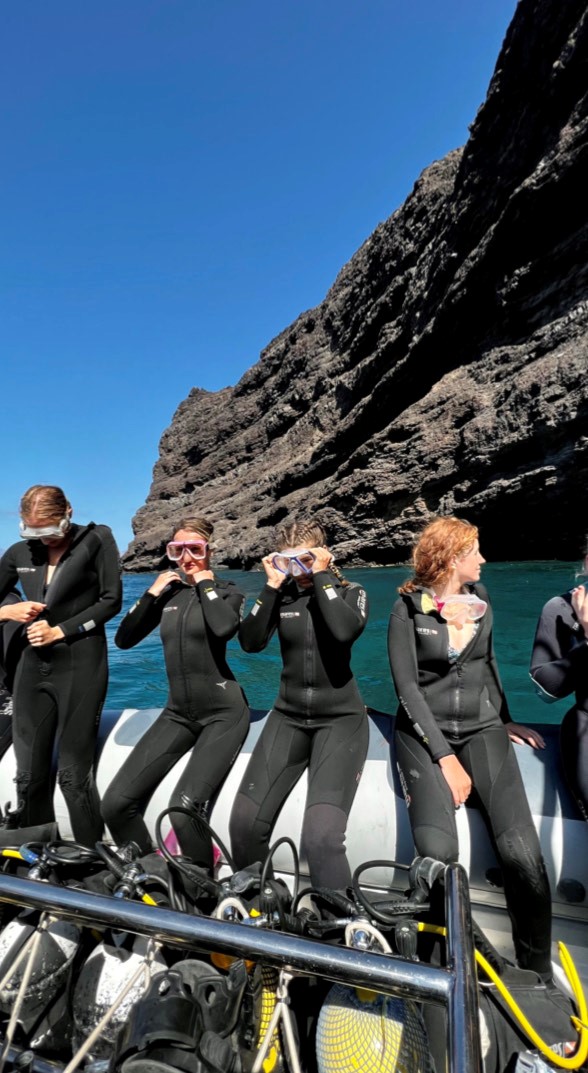 Yesterday, for our last day on the land and the first day of sailing, some of us took the morning for some last-minute shopping before the big Atlantic crossing. Other went to relax at the beach close to the port to swim a last time, while other benefited of the wifi to send some last-minute homework. And for a group of students, it was some scuba diving in the morning, they say turtles, different fish and start fish. For the afternoon, classes were at the schedule and we left the port around 16:00.