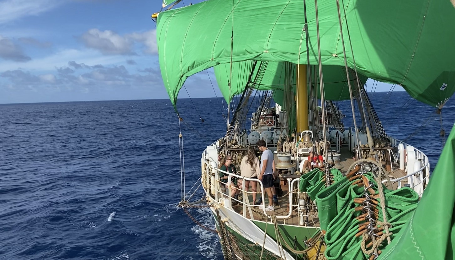 As we head out further into our Atlantic crossing, floaties have been fine-tuning their boson skills all day to be able to receive their Ordinary Seaman certification. Fixing lines up in the rigging and greasing everything that moves down on deck, dolphins were playing with the waves and swimming with the ship (some even spotted turtles). The marine biology students had just finished a fish dissection, and of course fed the remains to the dolphins (reduce, reuse, recycle, even at sea). A regular day of classes proceeded.