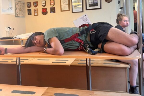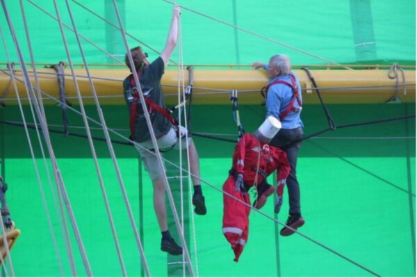 Although I (Naomi) spent the day on backshaft, the six watches were very busy! Watch 1 set the Oberbesan and Watch 3 inspected the rigging. We also set a new…