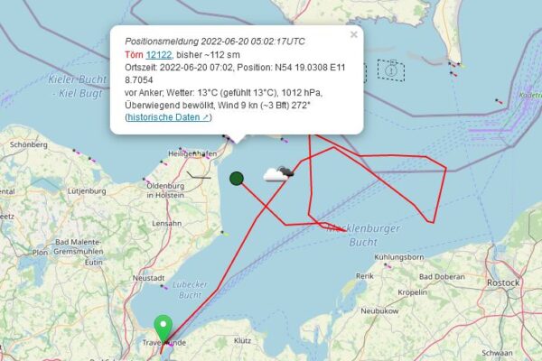 Törn: 321.22 Datum: 20.06.2022 Mittagsposition: Breite 54° 21,6 N Länge 011° 18,1 E Das Wetter: wechselhaft Auch vor Anker wird es nicht langweilig… Die Ankerwache verläuft ruhig, aber nach…