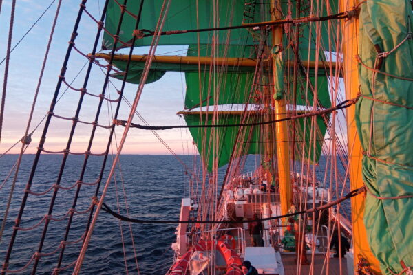 Good morning! This morning watch 6 watched the sunrise from the rigging and in the process managed to see a whale breech in the distance. Today is a good day!…