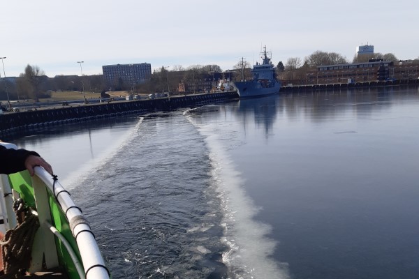 Datum: 14.02.2021 Mittagsposition: Kiel Tirpitzmole Wetter: 0 ° C, sonnig, mäßiger Wind Das Auslaufen Für mich begann der Tag, so wie für die meisten hier an Bord, mit dem Wecken…
