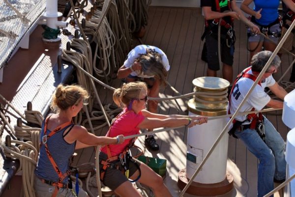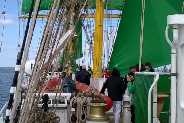 Tagesbericht 27.09.2019 Törn: 144.19 Datum: 27.09.2019 Mittagsposition: 38° 08,6’N 018°18,2‘E Das Wetter: Sonnig, 25 °C Titel/Überschrift: Urlaubsfeeling an Deck Liebe Leser, nach einer gelungenen „Sonnenuntergangshalse“ der 4-8-Wache segelten wir in…
