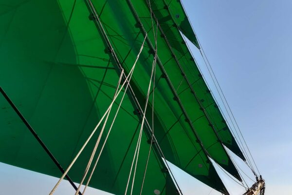 Datum: 8.8.2025 Mittagsposition: 55°22,5´N 005°44,3E Das Wetter: W 5-6 Seit gestern Nachmittag geht es sportlich zu. Alle 4 Stunden wird zusammen mit zwei Wachen eine Halse gefahren. Bei der…